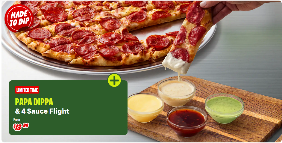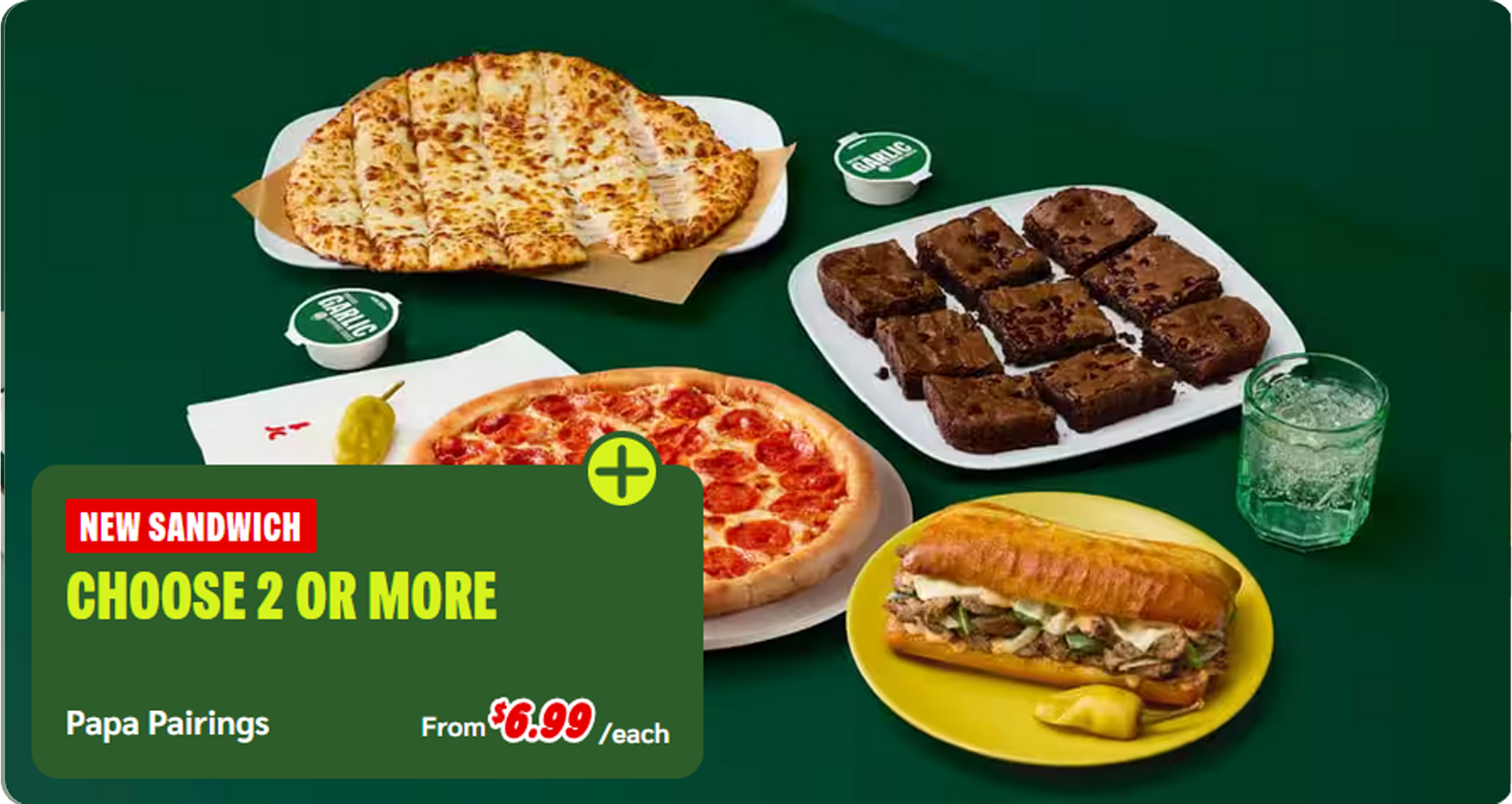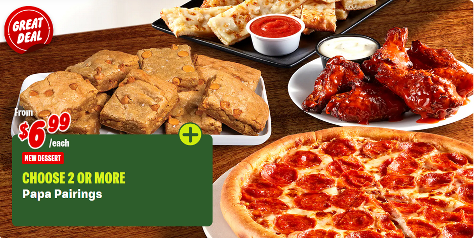 explore our menu Deals Pizza Sides Papa Bowls Desserts Papadias Drinks Papa Bites Extras Wings Order From Our App